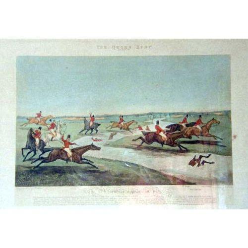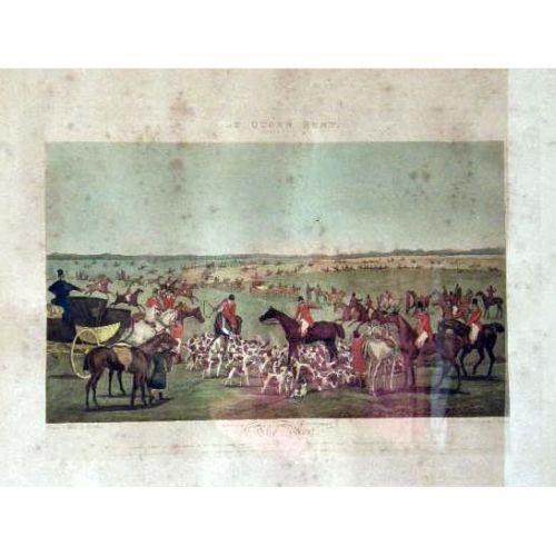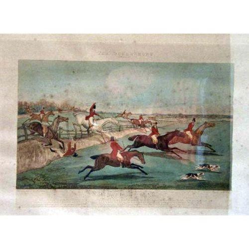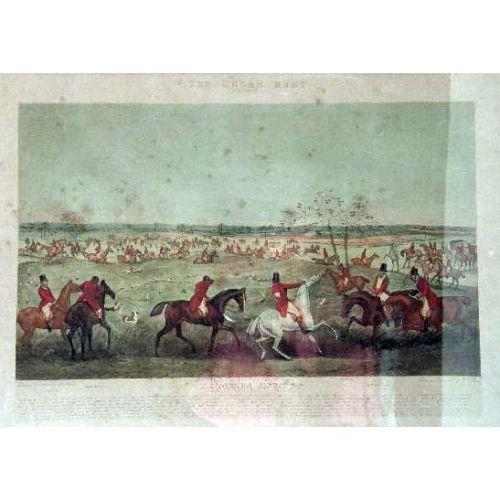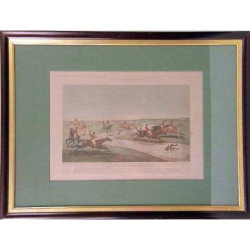 A GROUP OF FOUR FRAMED POLYCHROME PRINTS<BR><BR>Depicting a hunt scene, titled "The Quorn Hunt," foxing, 12"h x 17"w