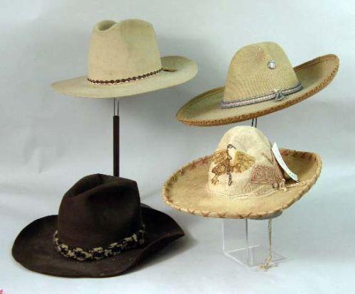 Including, a Stetson cowboy hat, a range rider and two Mexican sombreros, some wear