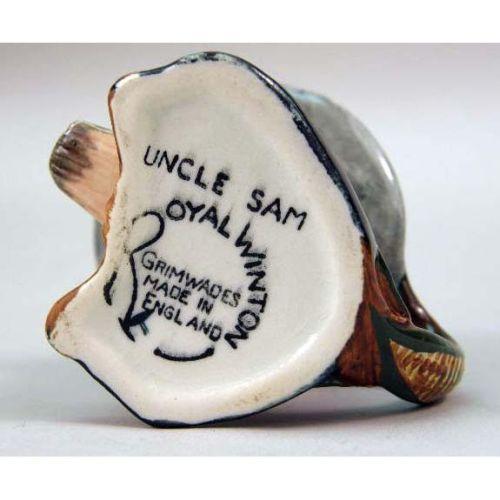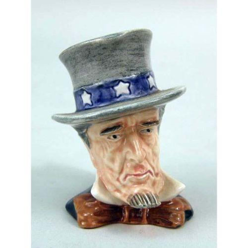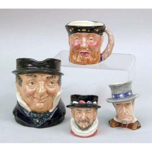 A GROUP OF FOUR POLYCHROME-DECORATED PORCELAIN TOBY MUGS<BR><BR>Including, two stamped underside Royal Dalton, one stamped Lancasters Hanley, England, and one stamped Royal Winton, "Uncle Sam," tallest: 4 1/2"h