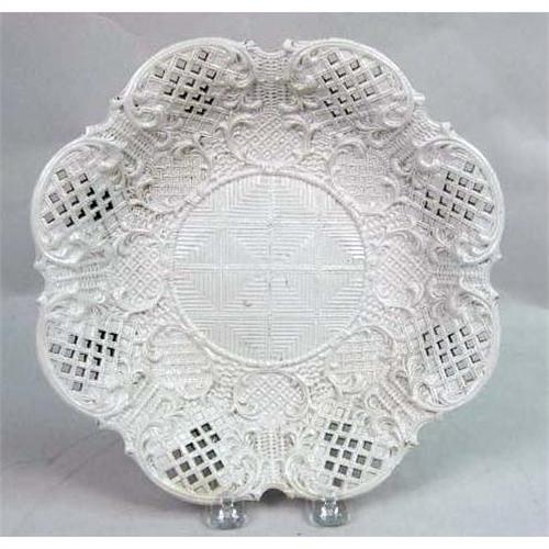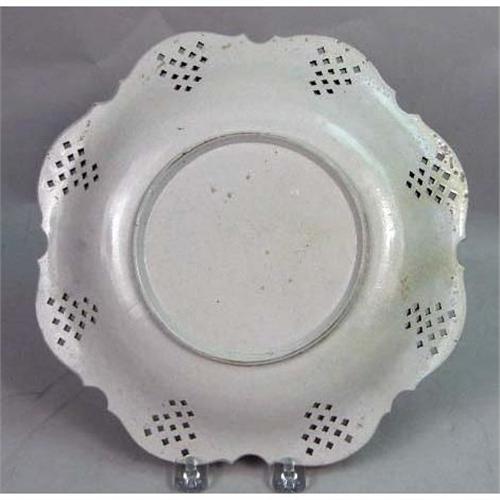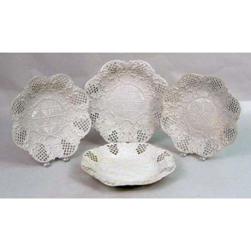 A GROUP OF FOUR SHAPED PORCELAIN SHALLOW BOWLS<BR><BR>With reticulated border, and repousse decoration, cracks, repairs, losses, 9-1/2"dia.