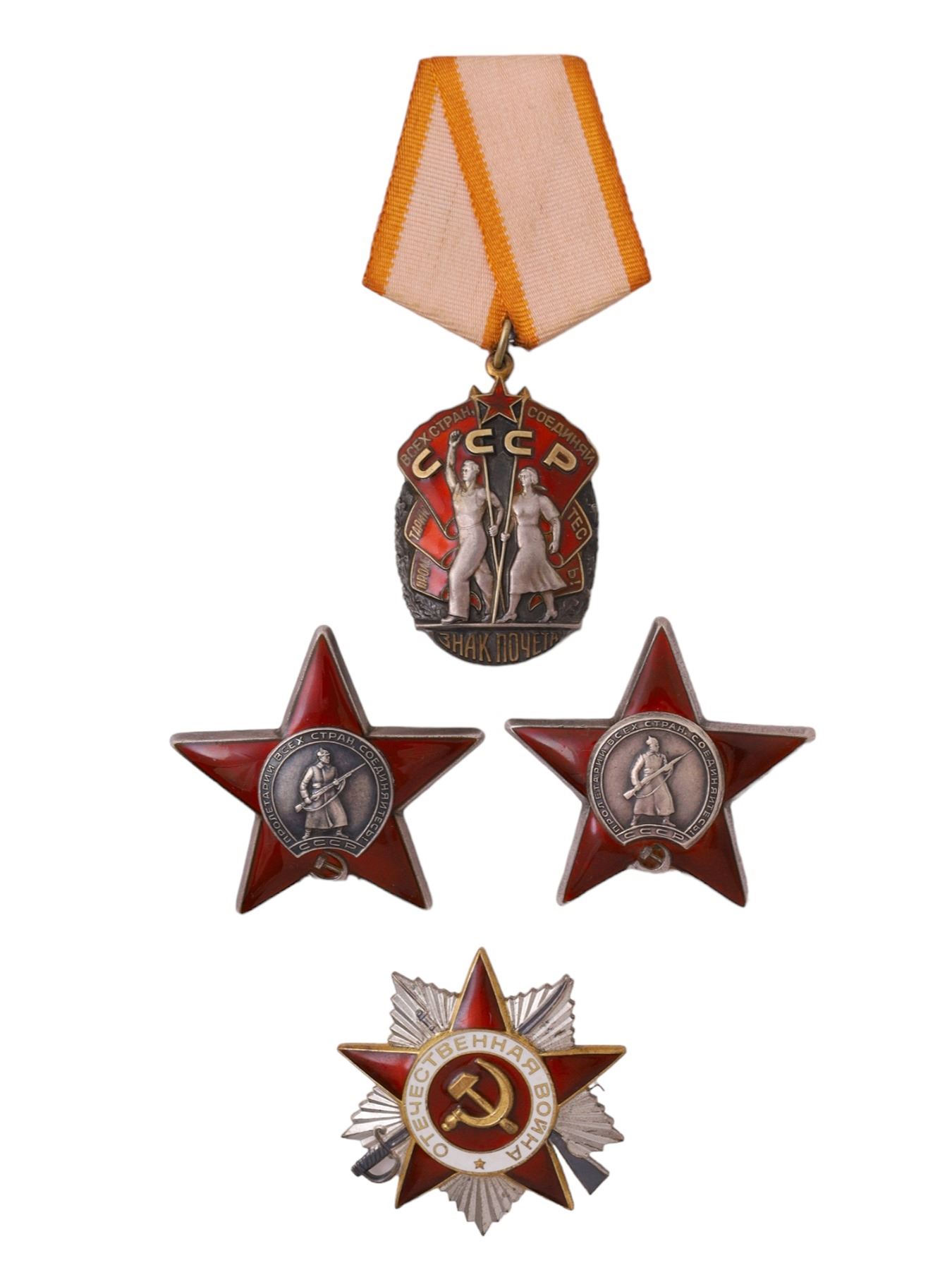 A GROUP OF FOUR SOVIET AWARDS: ORDER OF THE PATRIOTIC WAR, RED STAR, BANNER OF HONOR