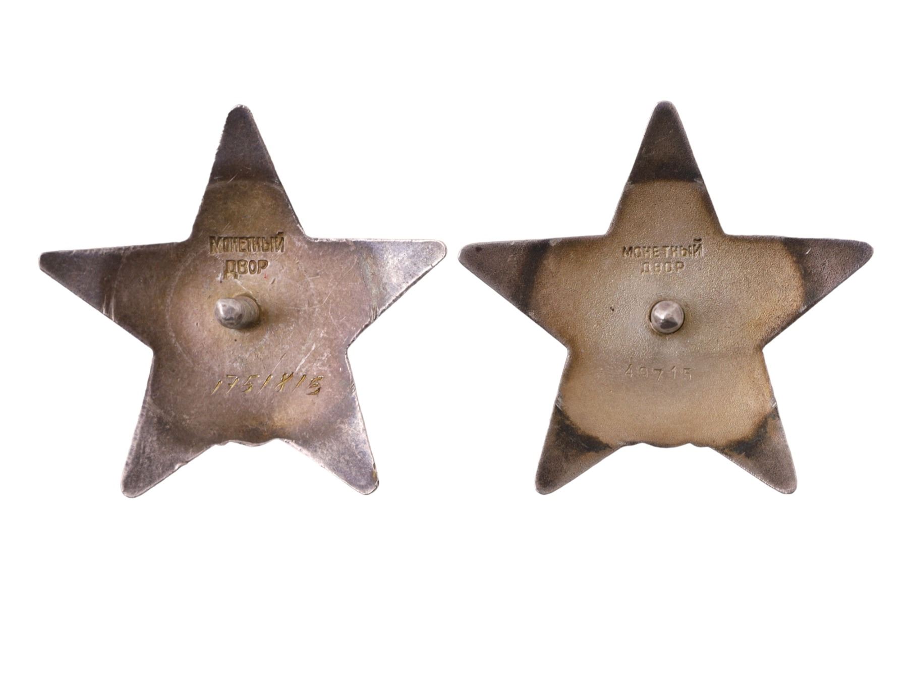 A set of four Soviet award medals. The first two being the Order of the Red Star (s/n 1751813, 49715), which was awarded for contribution to the defense of the USSR. The third being the Order of the Patriotic War, s/n , which was awarded for heroic deeds during WWII. The fourth and final award being the Order of the Badge of Honor, s/n 1178194 an award granted to citizens of the USSR for outstanding achievements and contributions in the realms of science, culture, technology, and many other fields.