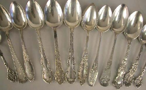 A GROUP OF GORHAM STERLING SILVER TEASPOONS IN VARIOUS PATTERNS; Apx. 16 T.O.