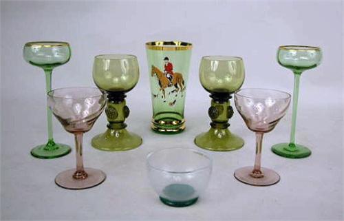 A GROUP OF GREEN GLASS Including twenty goblet, t