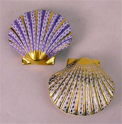 Comprising, a two starfish, two clam shells, a dolphin, and a snail shell, all marked Herend, 5 1/2"l, largest 6 pieces