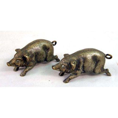 A GROUP OF METAL TABLE ARTICLES<BR><BR>Including brass candlesticks, figural pigs, a Chinese style horse, figural bookends, and more. Losses. 12 pieces.