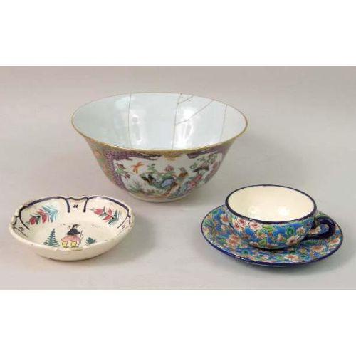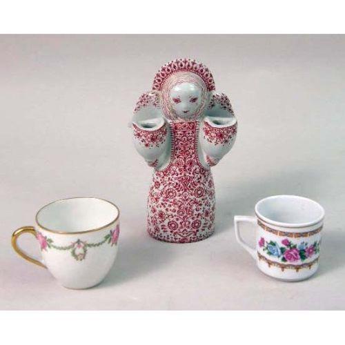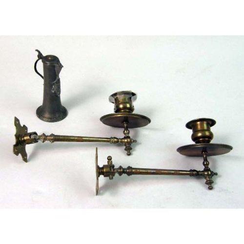 A GROUP OF MISCELLANEOUS PORCELAIN TABLE ARTICLES<BR><BR>Including, Staffordshire and export, and a faux tortoise shell cup and saucer, brass candlearms, a glass pitcher, and cups, losses, Approximately 38 pieces