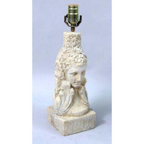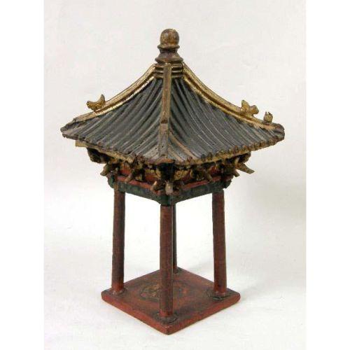 A GROUP OF MISCELLANEOUS TABLE ARTICLES<BR><BR>Including, a giltwood and red painted lion, a covered box marked Itally Bergdoff, a decorative miniature pagoda, and a gentleman toiletry bar, and a pair of barley twist candlesticks, 7 pieces