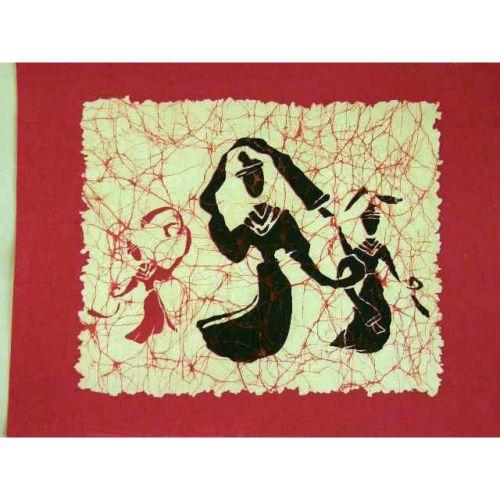 A GROUP OF MIXED MEDIA<BR><BR>including Thai ink drawings on rice paper and Indonesian batiks. 14"h x 18"w