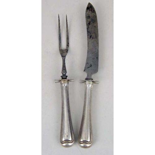 A GROUP OF NINE STERLING SILVER AND STERLING SILVER HANDLED SERVING PIECES<BR><BR>Monogrammed, including a salad set, gravy ladle and cake servers, longest 10-1/4"long