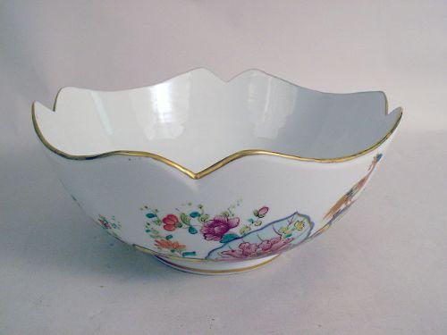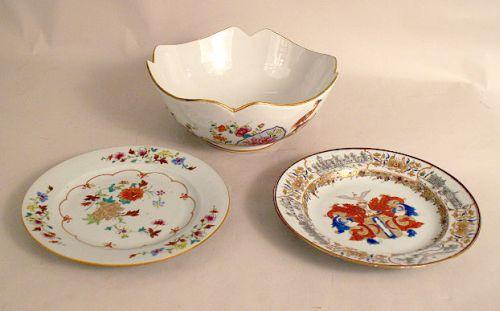 Comprising two plates and a footed shaped bowl stamped "A Mottahedeh Design". 3 pieces.
