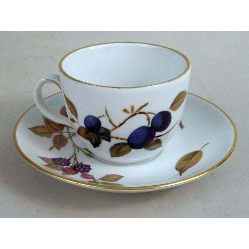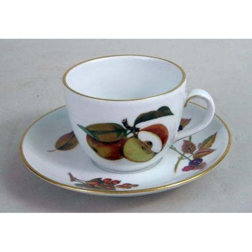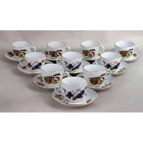A GROUP OF POLYCHROME PARCEL-GILT DECORATED PORCELAIN CUPS AND SAUCERS<BR><BR>Marked underside "Royal Worcester," "Evesham" pattern, including twelve cups and ten saucers