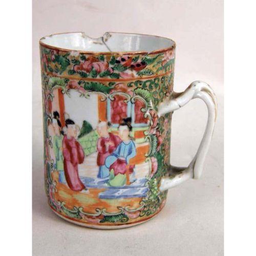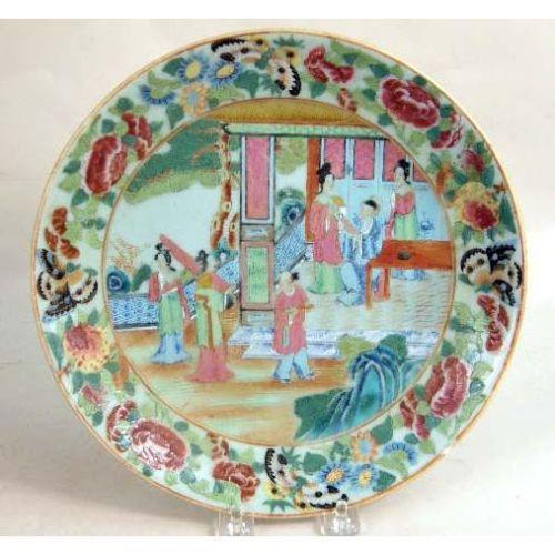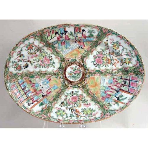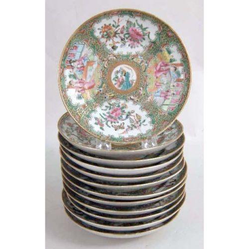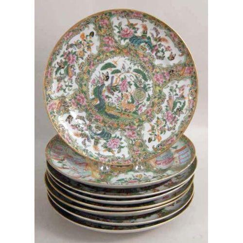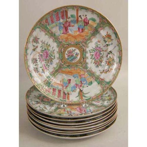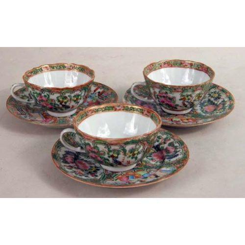 A GROUP OF ROSE MEDALLION EXPORT PORCELAIN DINNERWARE<BR><BR>Including, a platter, 14"l, twenty-two dinner plates, twenty-one bread and butter plates, seven cups, two missing handles, nine saucers, three demi-tasse cups, and four saucers, cracks, chips, losses, and wear