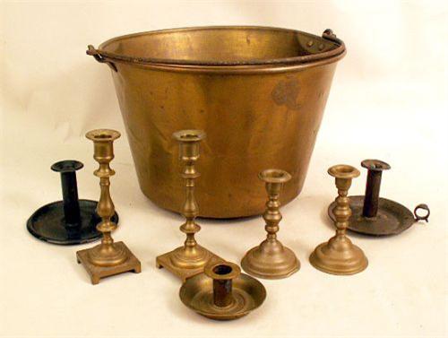 American and English. Wear. Together with a brass apple butter bucket. Wear. 8 pieces.