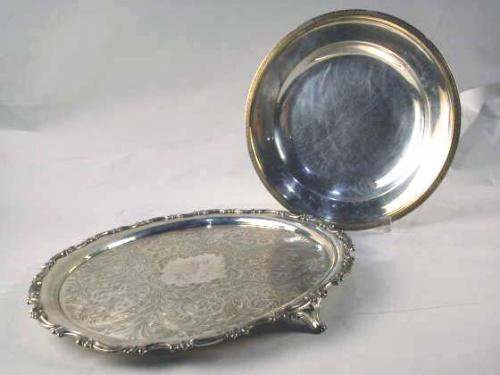 A GROUP OF SILVER PLATED CIRCULAR TRAYS; Largest 14"diameter
