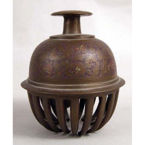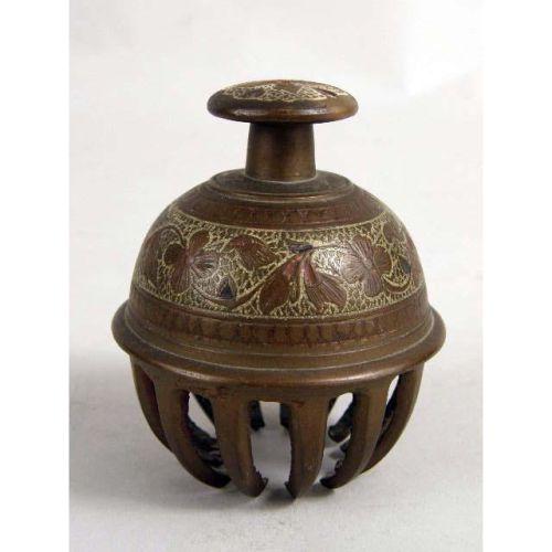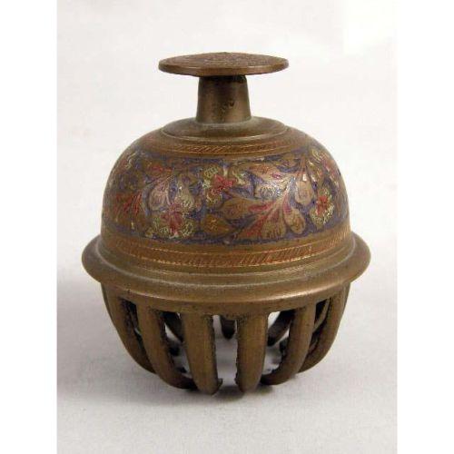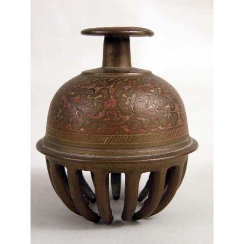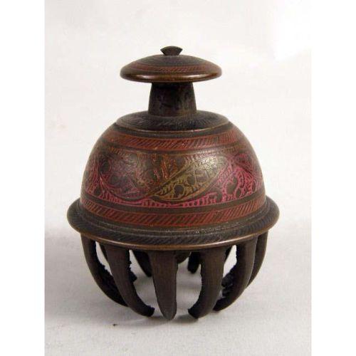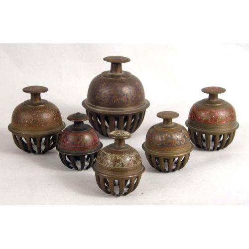 A GROUP OF SIX ELEPHANT BELLS<BR><BR>in assorted sizes. Each with bodies of incised, hammered and painted brass. Heights from 3 1/4" - 6".