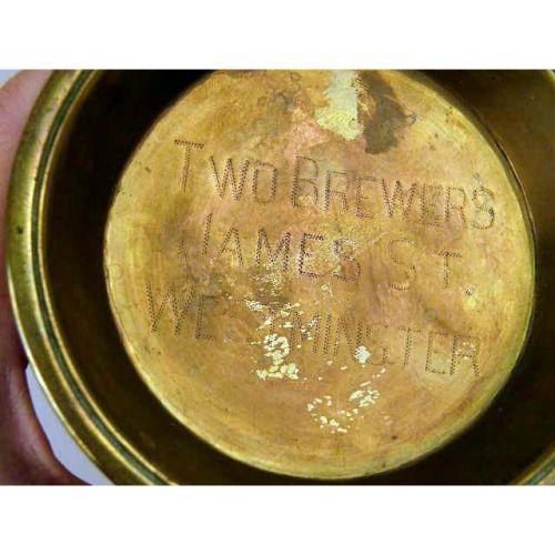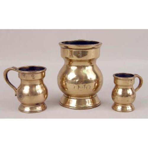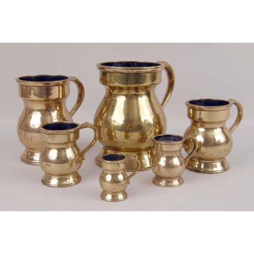 A GROUP OF SIX GRADUATED BRASS MEASURES<BR><BR>Monogrammed, marked VR360LCC, and inscribed "Two Brewers James St., Westminster," Tallest: 6 1/2"h