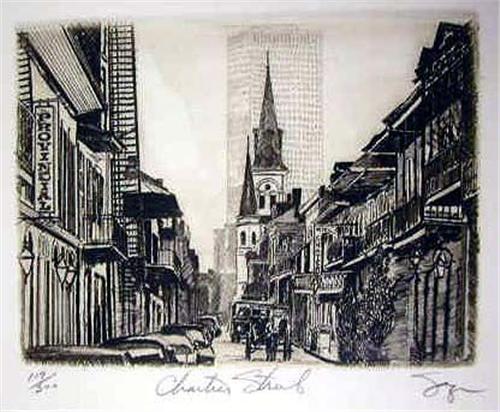 A GROUP OF SIX PHILIP SAGE PRINTS OF NEW ORLEANS SCENES; Comprising: Madam John's Legacy 101/300, Cornstalk Hotel 115/200, Decatur Street 82/200, Bearegard House 103/200, Lafitt's Blacksmith Shop 130/200, Charlre's Street 109/200, all apx. 5-1/2" x 6-3/4" matted and framed in a similar way