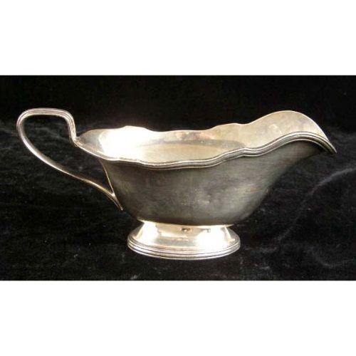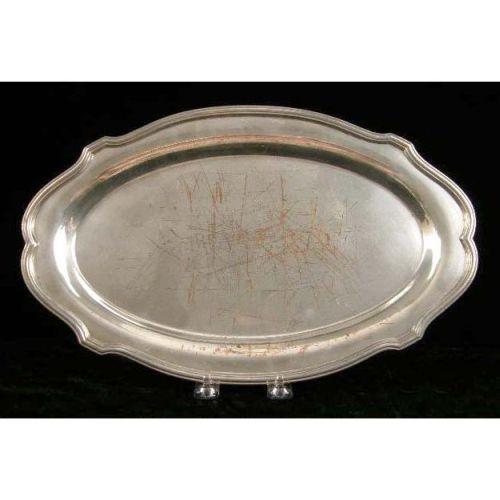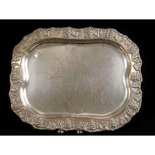 A GROUP OF SIX SILVER PLATED TABLE ITEMS<BR><BR>Including two trays, a covered box, a sauceboat and a bowl
