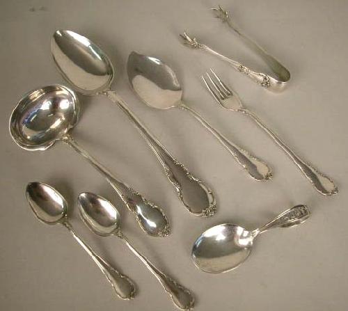 A GROUP OF STERLING FLATWARE; Including: 6 Lunt pieces, sugar tongs and a baby spoon