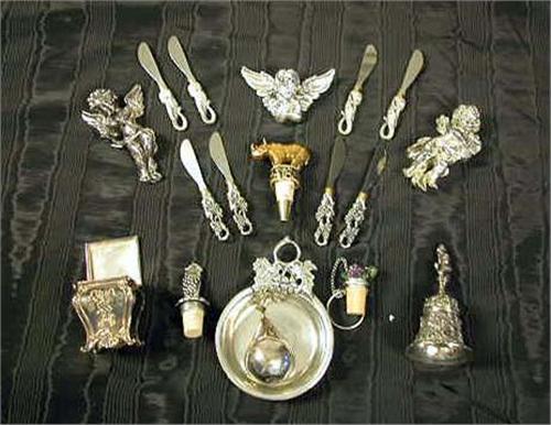 A GROUP OF STERLING SILVER, SILVER PLATED, AND SILVER METAL TABLE ARTICLES