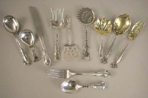A GROUP OF STERLING SILVER SMALL FLATWARE SERVING PIECES; Together with a set of twelve 800 silver demitasse spoons, and miscellaneous flatware items, longest 6-3/4"l, total apx. 15 T.O.