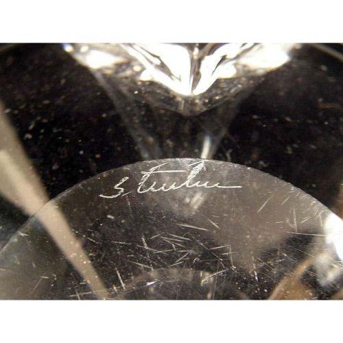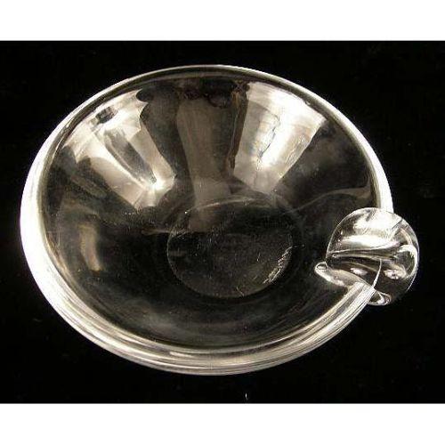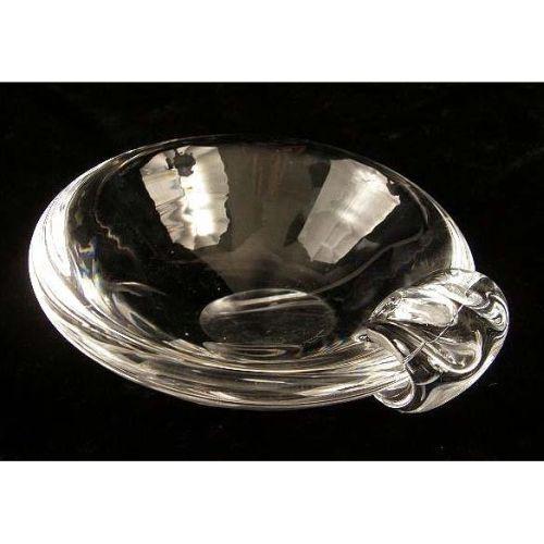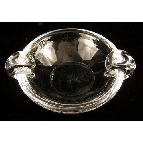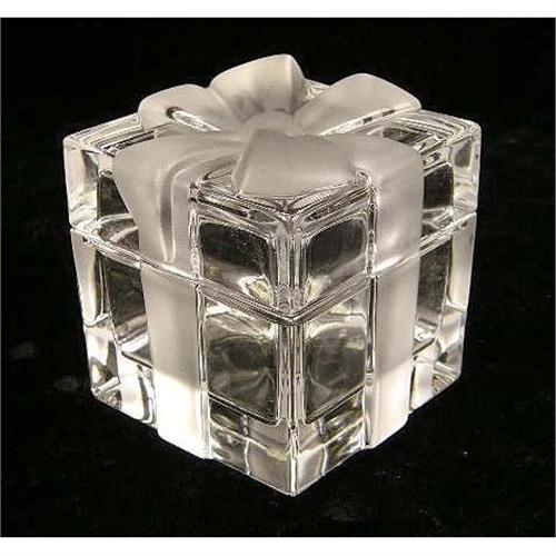 A GROUP OF STEUBEN COLORLESS GLASS CANDY DISHES<BR><BR>Together with a similar unmarked dish, and a box shaped like a present, marked Tiffany, wear and scratches. 5 pieces