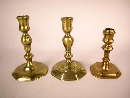 A GROUP OF THREE BRASS CANDLESTICKS, ENGLISH; Tallest 5 1/2"h