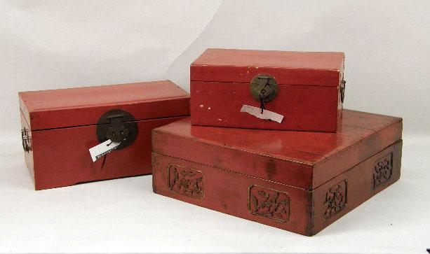 A GROUP OF THREE CHINESE RED LACQUER BOXES