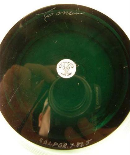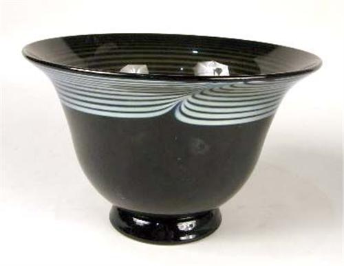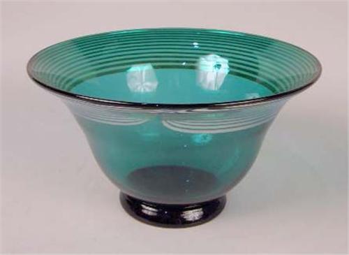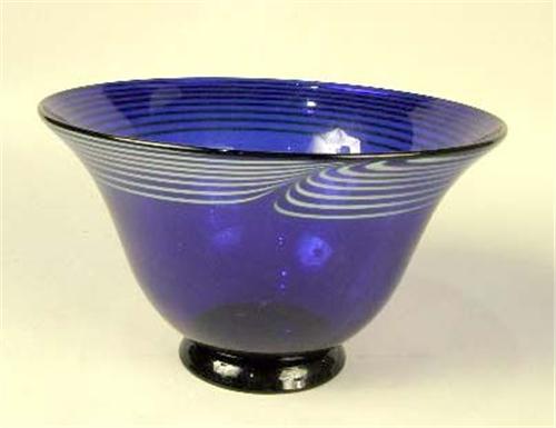 Comprising, cobalt, emerald gold, and dark red, all with banding near the rim, all signed "Correia," 5 1/2"h x 9 1/2"dia.