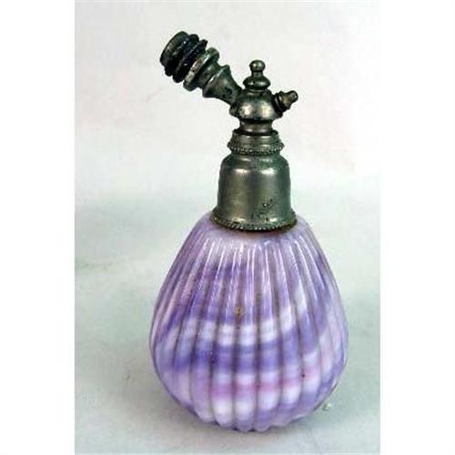 A GROUP OF THREE GLASS ATOMIZERS<BR><BR>Purchased in Czechoslovakia, two in marbleized lavender, and the other cut cranberry-to-clear, repair and losses