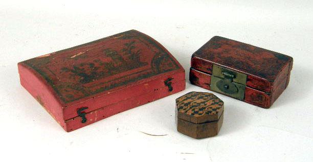 A GROUP OF THREE LACQUERED AND GILT DECORATED BOXES