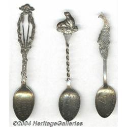<B>A GROUP OF THREE MARINE LIFE SOUVENIR SPOONS</B></I><BR>Various makers, c.1900<BR><BR>Three demitasse marine theme spoons, <I>marked reverse of handles</B></I><BR>the longest, 4.25in. 3 Items <BR><BR><B>Important notice:</B> Heritage usually auctions material at the rate of 200-250 lots per hour. On some occasions eBay Live bid software or the Internet may not be able to keep up with the pace of the auction. We recommend placing a realistic absentee bid now as insurance to avoid disappointment. Occasionally the auctioneer may eliminate or reject an eBay Live bid, and the auctioneer may also reopen a lot after the close of the eBay live bidding (usually because we missed an audience bid), and may reject your bid even if it shows you as the winning bidder. By bidding via eBay Live, you agree that Heritage may award the lot to another bidder at its sole discretion under the circumstances described above or any other reasonable circumstances. Since eBay bids are not shown to us until we open the lot on the floor, we treat those bids just like floor bids. In most cases the floor responds before the eBay bid is presented to us, due to Internet lag time, so for consistency we have made it a policy that floor bids are always considered first over tie eBay live bids. Also please note that all Heritage lots purchased through eBay Live carry a 25% Buyer's Premium. Please make sure you read the Terms and Conditions before you bid. <BR><BR><B>IMPORTANT ANNOUNCEMENT ABOUT RESERVES:</B> Heritage now divulges all reserves on its web site 7 days before every auction. If you want to know whether the reserve on this lot has been met, and if not, what the reserve amount is, please visit this lot page on the HeritageCoin.com web site, or email: bid@HeritageGalleries.com </span></font>