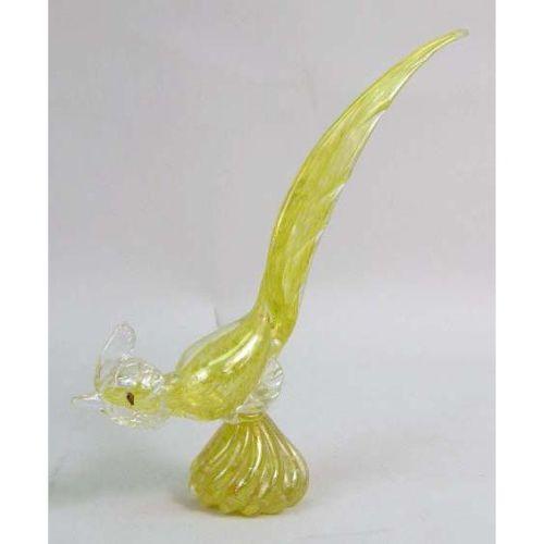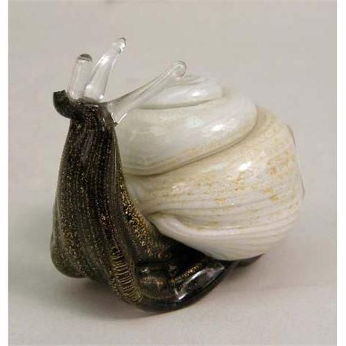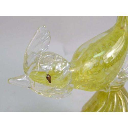 A GROUP OF THREE MURANO GLASS FIGURES OF ANIMALS<BR><BR>Comprising two birds and a snail, chips and losses, 10 1/2"h x 15"l