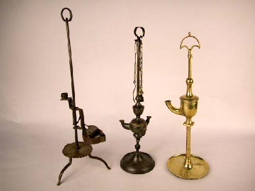 A GROUP OF THREE OIL LAMPS, CONTINENTAL; Tallest 20"h