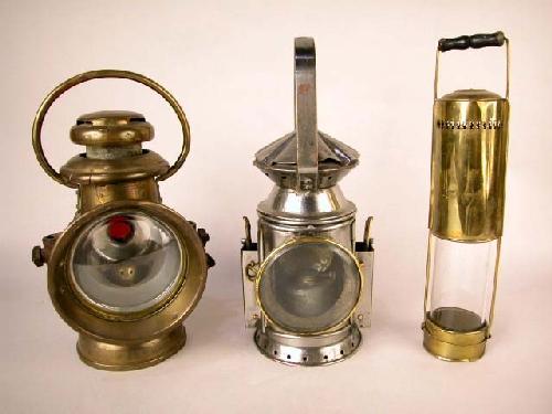 A GROUP OF THREE RAILWAY LANTERNS, ENGLISH; Tallest 15"h