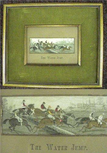 A GROUP OF THREE "STEVENGRAPH PURE SILK WOVEN PICTURES"; Comprising: "The Water Jump", "The Start", and "The Finish", framed to see the Stevengraph label on the reverse, each image 2-1/4" x 5-7/8", framed and matted 11" x 13", gilt gesso frame