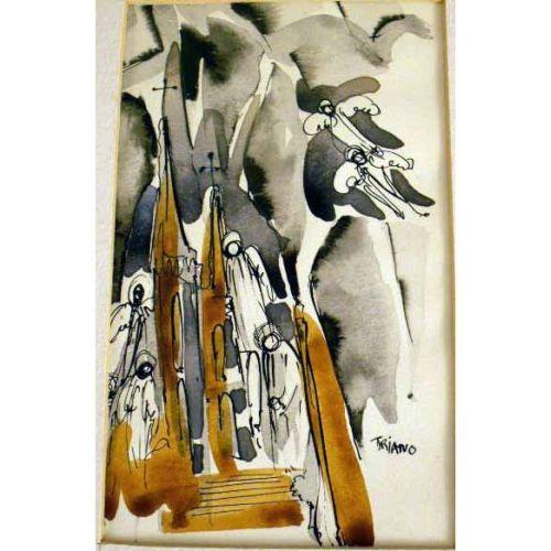 A GROUP OF THREE WORKS<BR><BR>Comprising a watercolor of an abstract constellation, bears signature lr M.D. Simpson, an engraving of a flying bird with a partially legible title on verso "Bird in the ?", bears signature lr Baskin, numbered 307/350, Some foxing. From 5"h x 3"w to 8"h x 10"w.