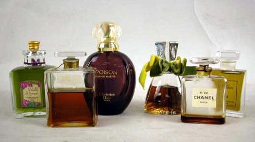 A GROUP OF TWELVE PERFUME AND COLOGNE BOTTLES Including Chanel #22, Paris Demon, Raphael, Paris