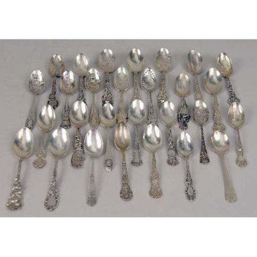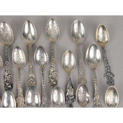 A GROUP OF TWENTY EIGHT STERLING SILVER SOUVENIR TEASPOONS AND COFFEE SPOONS<BR><BR>Total weight apx. 20 T.O.
