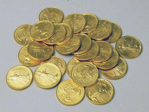 22K gold, each 1/4 oz., circa late 1980s, all uncirculated, approximately MS 60 to 65, approximately 6 1/4 T.O., in plastic tube.