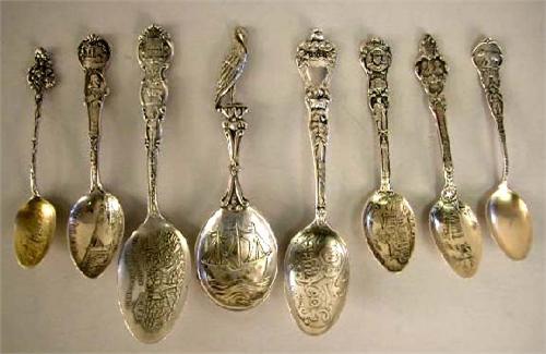 A GROUP OF TWENTY STERLING SILVER SOUVENIR SPOONS; Apx. 12 T.O.