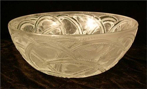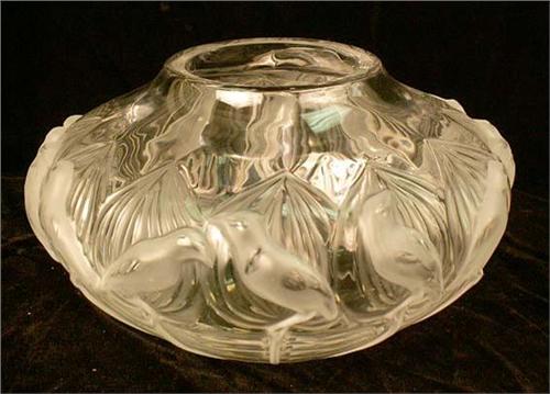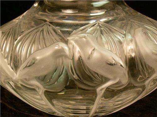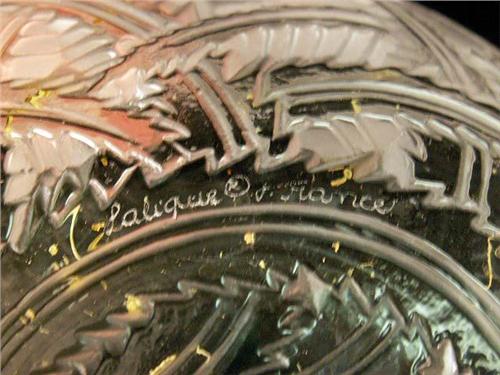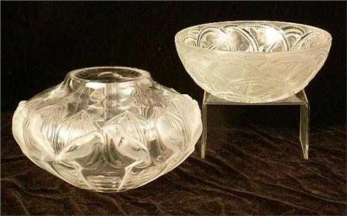 One with a bird motif, both signed Lalique, 7"h x 11"w