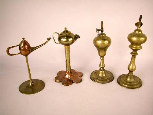 A GROUP OF TWO OIL LAMPS, CONTINENTAL; Tallest 10"h