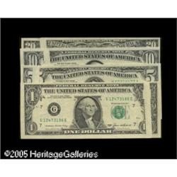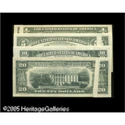 <B>A Gaggle of Gutters</B></I> including $20 1974 FRN large gutter fold <B>CU,</B></I> $10 1977 FRN large gutter fold <B>Choice AU,</B></I> $1 1985 FRN large gutter fold <B>Very Fine+,</B></I> $5 1985 FRN large gutter fold <B>Choice CU</B></I>. 4 notes Lot:15511