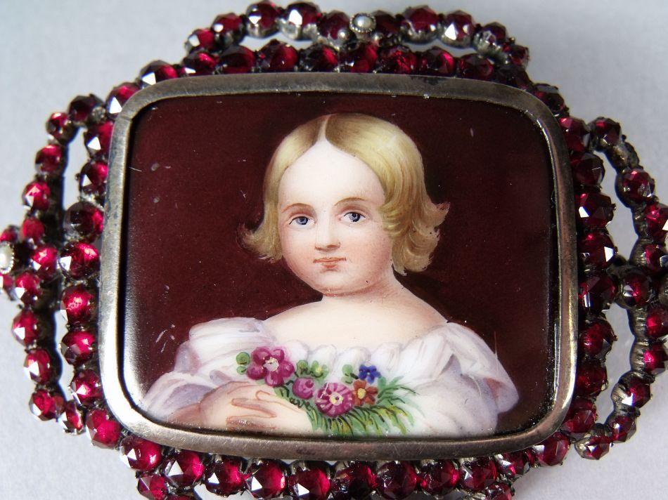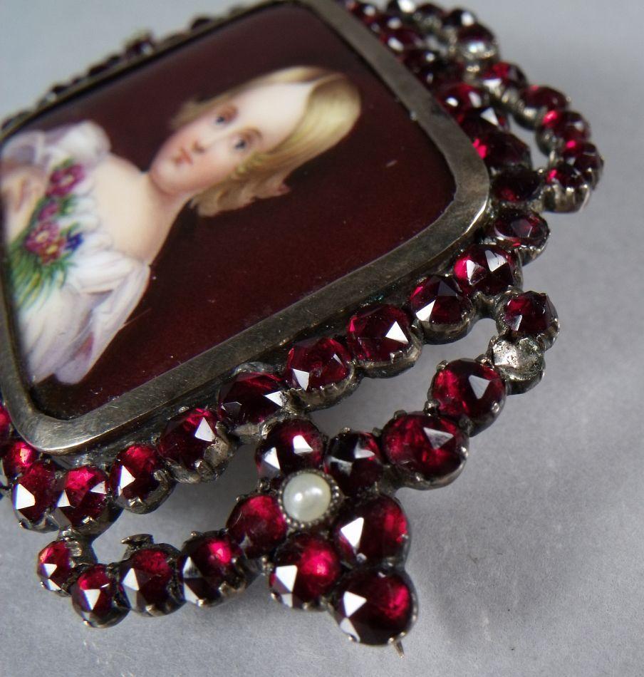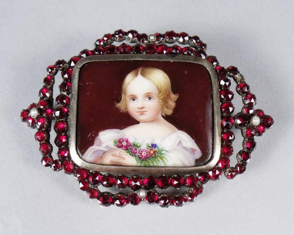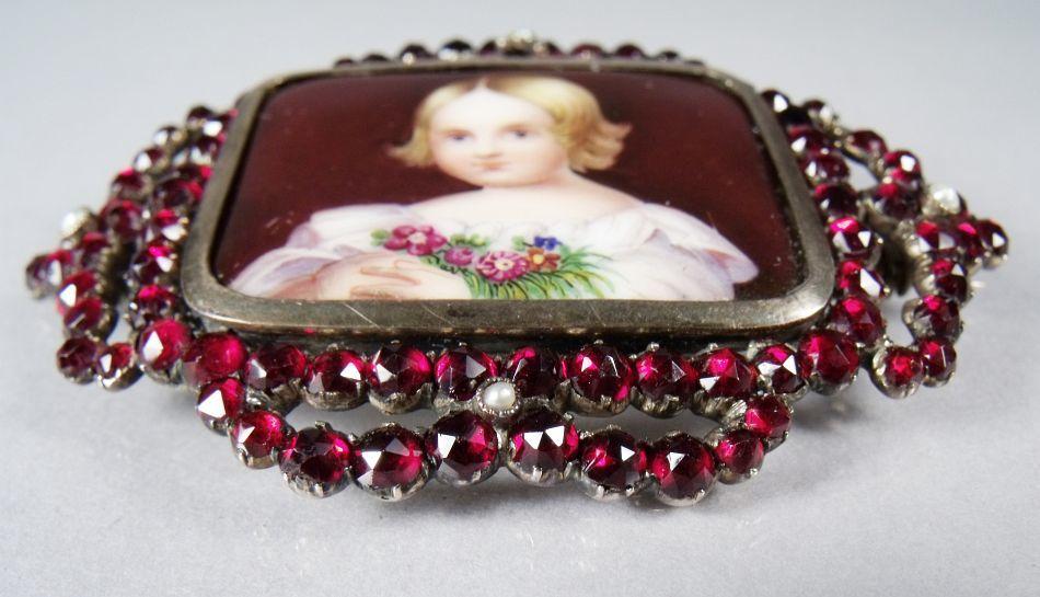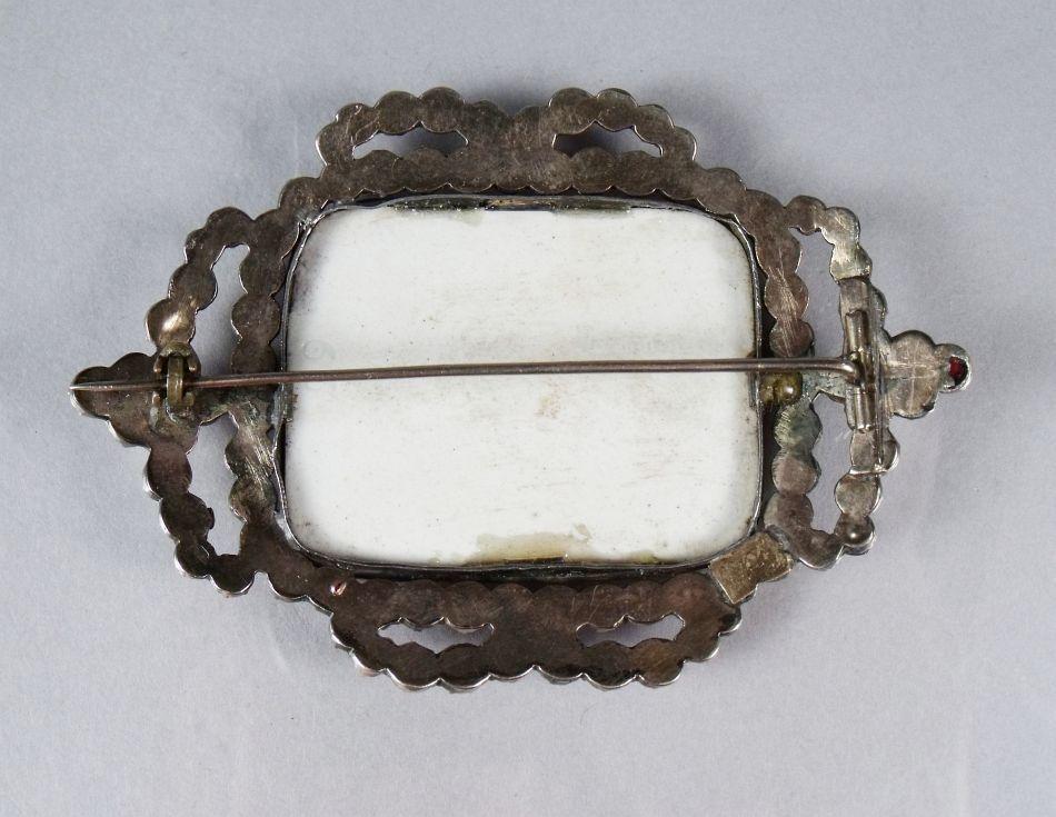 A Garnet and Porcelain Brooch.