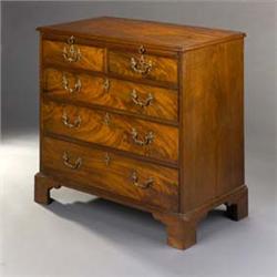 A George III Mahogany Chest], with a moulded top and slide over two short and three long drawers, on bracket feet, {91cm by 96cm by 56cm} {See illustration} £2500-3500