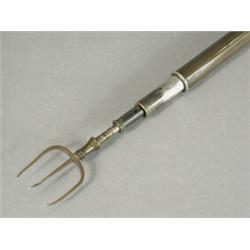 A George III Sheffield plate telescopic toasting fork with silver tines, indistinctly marked Est. 80/150