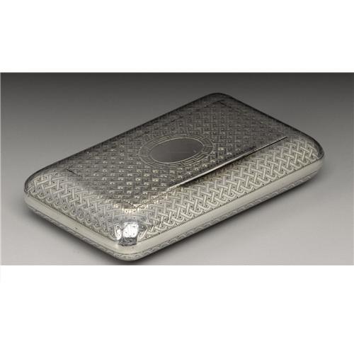 <B>A George III Silver Snuff Box</B></I><BR><BR>T. Phipps and E. Robinson, London, England<BR>1808-09<BR>Silver and silver gilt<BR>Marks: (lion passant), (leopard's head), (monarch profile), <I>TP</B></I> over <I>ER, N</B></I><BR>3.12 in. long, 2.28 troy ounces.<BR><BR>Of top opening form with engine turned decoration. Silver gilt interior.<BR> <BR><BR><B>Important notice:<