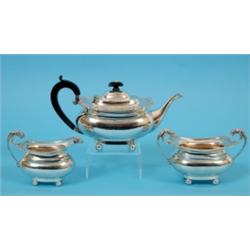 A George III Style Silver Three Piece Tea Service, with gadroon and shell edging, on four ball feet, Birmingham 1907 See illustration £200 - 300